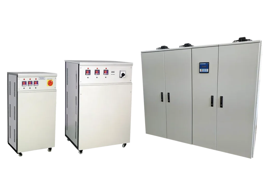Automatic regulators for industrial devices which regulates mains voltage for critical loads.